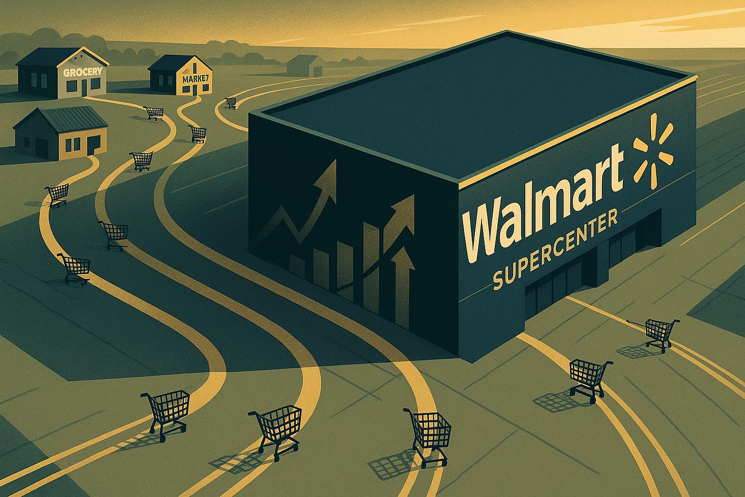 Walmart grew from grocery newcomer to market leader in just 13 years. How Walmart's "experiment" with "unknown profitability" transformed into $276 billion in sales (60% of US revenue) and what lessons does this hold for Amazon's current grocery ambitions?