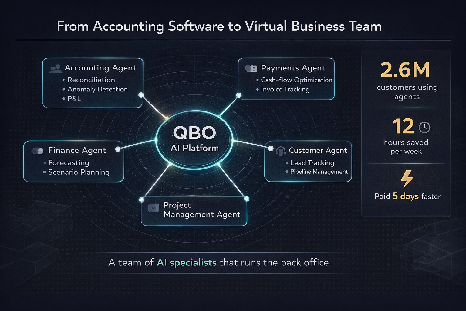 QBO’s pitch shifts from accounting software to a team of AI specialists that runs and streamlines the back office, so owners can spend more time on the work that grows the business.