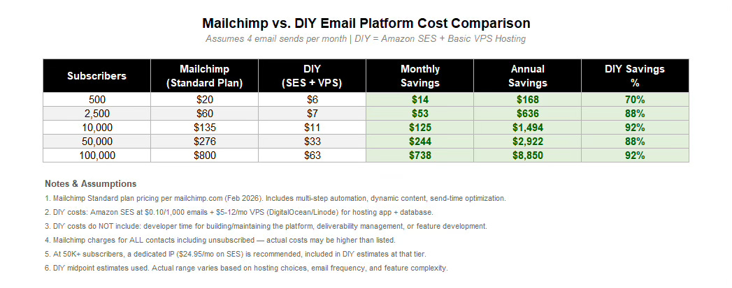The risk isn’t every business vibe coding their own ESP to save money. The ESP business is already a commodity. The risk isn’t current Mailchimp subscribers leaving either. The data and operational switching costs are too high.