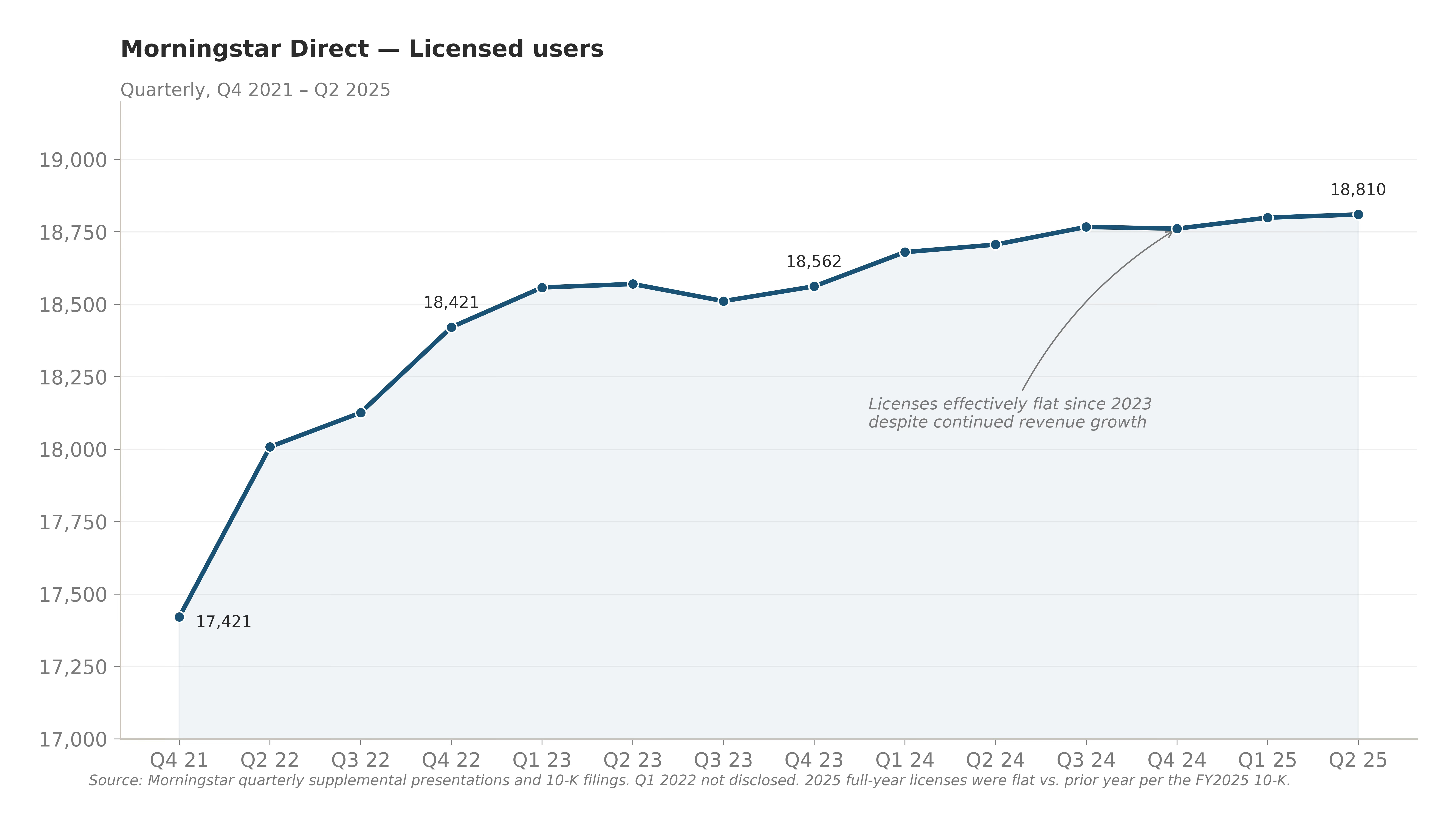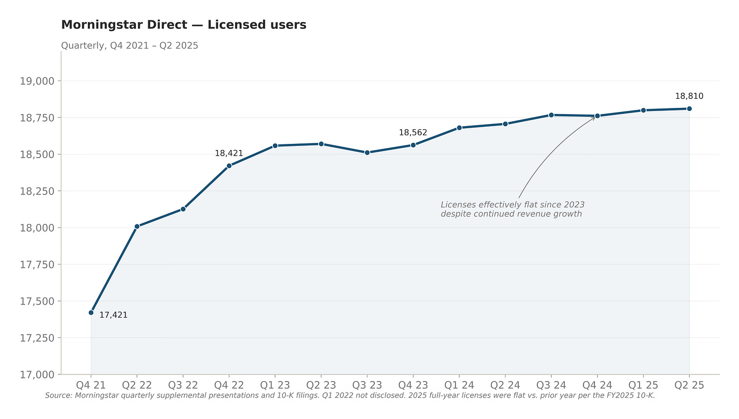 If AI were going to strangle anything at Morningstar, it would start here, and the flattening licensed-user curve supports that story.