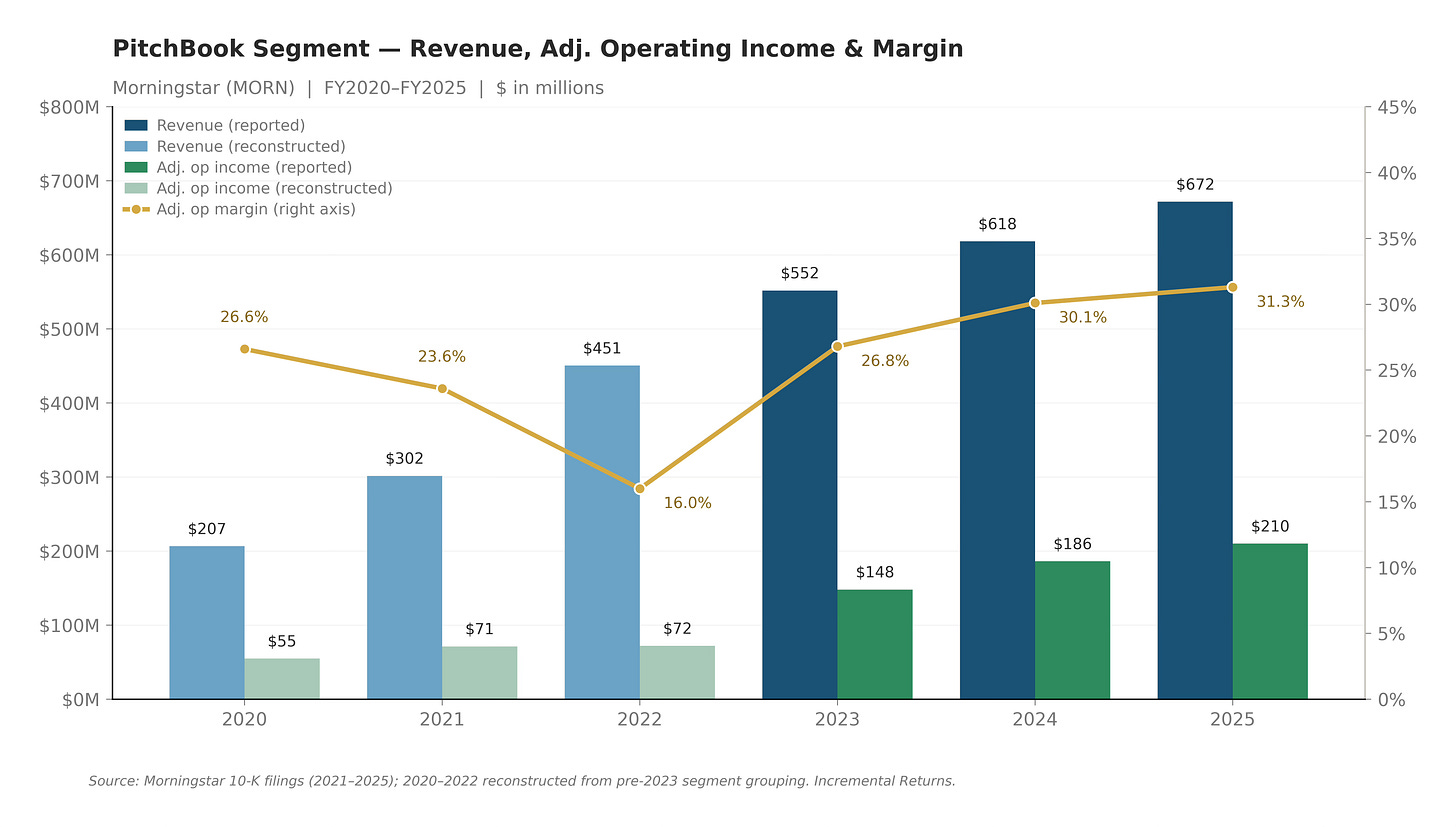 If PitchBook reaccelerates even modestly, the whole MORN thesis gets materially easier. If it slips further, the bear case on the stock gets a lot more credible.
